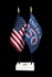 This high quality America 250 and US executive miniature flag desk set is perfect for office, classroom and table decorations. Flags are made of silk-like rayon, measure 4"x6" and are attached to 10" black plastic staff with a gold spear top. All edges are hem stitched.