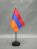 Each Armenia small miniature desk flag measures 4”x6”; and is attached to a 10”; black plastic stick with a gold spear topper. These little flags make perfect table decorations. Black flag stand is not included, but is sold separately.