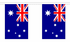 Australian string flag bunting is available in two sizes, 10' string with 10 6"x9" polyester flags or 30' string with 30 6"x9" polyester flags. Several 10' sections can be tied together for a longer length and the 30' strings can be cut to fit the size that you need in the space available.