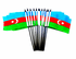 Each Azerbaijani miniature flag measures 4"x6" and is attached with a pole hem to a 10" black plastic staff with a black spear top.