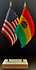 This high quality Bolivia and American miniature international flag desk set is perfect for office, classroom and table decorations. Flags are made of silk-like rayon, measure 4"x6" and are attached to 10"; black plastic staff with a gold spear top. All edges are hem stitched.