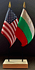 This high quality Bulgaria and American miniature international flag desk set is perfect for office, classroom and table decorations. Flags are made of silk-like rayon, measure 4″x6″ and are attached to 10″ black plastic staff with a gold spear top. All edges are hem stitched.