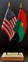 This high quality Burkina Faso and American miniature international flag desk set is perfect for office, classroom and table decorations. Flags are made of silk-like rayon, measure 4″x6″ and are attached to 10″ black plastic staff with a gold spear top. All edges are hem stitched.