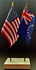 This high quality Cook Islands and American miniature international flag desk set is perfect for office, classroom and table decorations. Flags are made of silk-like rayon, measure 4"x6" and are attached to 10"; black plastic staff with a gold spear top. All edges are hem stitched.