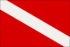 This 3'x5' Diver Down polyester flag contains two metal grommets on the left header for easy display on a flagpole, wall, or ceiling.
