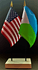 This high quality Djibouti and American miniature international flag desk set is perfect for office, classroom and table decorations. Flags are made of silk-like rayon, measure 4″x6″ and are attached to 10″ black plastic staff with a gold spear top. All edges are hem stitched.