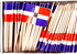 Flag toothpicks are packaged 100 to the box. Each box is sealed with a cellophane wrapper. Flag designs measure 1"x1.5" and are attached to a standard size wooden 2.5" toothpick.