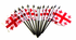 Each Republic of Georgia miniature flag measures 4"x6" and is attached with a pole hem to a 10" black plastic staff with a black spear top.