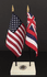This high quality Hawaii and US executive miniature flag desk set is perfect for office, classroom and table decorations. Flags are made of silk-like rayon, measure 4"x6" and are attached to 10" black plastic staff with a gold spear top. All edges are hem stitched.