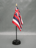 Each Hawaii small miniature desk flag measures 4x6 inch; and is attached to a 10 inch; black plastic stick with a gold spear topper. These Hawaiian flags make perfect table decorations. Black flag stand is not included, but is sold separately.
