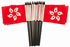 Each Hong Kong mini flag measures 4"x6" and is attached with a pole hem to a 10" black plastic staff and a spear top.