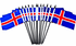 Each Iceland miniature flag measures 4"x6" and is attached with a pole hem to a 10" black plastic staff with a black spear top.