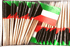 Flag toothpicks are packaged 100 to the box. Each box is sealed with a cellophane wrapper. Flag designs measure 1"x1.5" and are attached to a standard size wooden 2.5" toothpick.