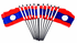 Each Laotian miniature flag measures 4"x6" and is attached with a pole hem to a 10" black plastic staff with a black spear top.