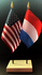 This high quality Luxembourg and American miniature international flag desk set is perfect for office, classroom and table decorations. Flags are made of silk-like rayon, measure 4"x6" and are attached to 10"; black plastic staff with a gold spear top. All edges are hem stitched.