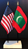 This high quality Maldives and American miniature international flag desk set is perfect for office, classroom and table decorations. Flags are made of silk-like rayon, measure 4"x6" and are attached to 10"; black plastic staff with a gold spear top. All edges are hem stitched.