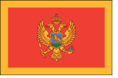 Flag description: A red field bordered by a narrow golden-yellow stripe with the Montenegrin coat of arms centered