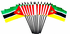 Each Mozambique miniature flag measures 4"x6" and is attached with a pole hem to a 10" black plastic staff with a spear top.