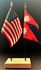 This high quality Nepal and American miniature international flag desk set is perfect for office, classroom and table decorations. Flags are made of silk-like rayon, measure 4"x6" and are attached to 10" black plastic staff with a gold spear top. All edges are hem stitched.