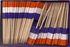 Netherlands flag toothpicks are packaged 100 to the box. Each box is sealed with a cellophane wrapper. Flag designs measure 1"x1.5" and are attached to a standard sized wooden 2.5" toothpick.