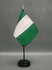 Each Nigeria small miniature desk flag measures 4″x6″ and is attached to a 10″ black plastic stick with a gold spear topper. These little Nigerian flags make perfect table decorations. Black flag stand is not included, but is sold separately.