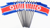 Each North Korea miniature flag measures 4"x6" and is attached with a pole hem to a 10" black plastic staff with a spear top.