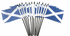 Each Scotland Cross miniature flag measures 4"x6" and is attached with a pole hem to a 10" black or gold plastic staff with a black or gold spear top.