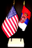 This high quality Serbia and American miniature international flag desk set is perfect for office, classroom and table decorations. Flags are made of silk-like rayon, measure 4″x6″ and are attached to 10″ black plastic staff with a gold spear top. All edges are hem stitched.