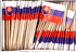 Flag toothpicks are packaged 100 to the box. Each box is sealed with a cellophane wrapper. Flag designs measure 1"x1.5" and are attached to a standard size wooden 2.5" toothpick.