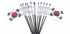 Each South Korea miniature flag measures 4"x6" and is attached with a pole hem to a 10" black plastic staff with a black or gold spear top.