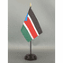 Each South Sudan small miniature desk flag measures 4″x6″ and is attached to a 10″ black plastic stick with a gold spear topper. These South Sudan flags make perfect table decorations. Black flag stand is not included, but is sold separately.
