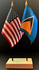 This high quality St. Lucia and American miniature international flag desk set is perfect for office, classroom and table decorations. Flags are made of silk-like rayon, measure 4″x6″ and are attached to 10″ black plastic staff with a gold spear top. All edges are hem stitched.