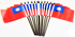 Each Taiwan miniature flag measures 4"x6" and is attached with a pole hem to a 10" black plastic staff with a black or gold spear top.