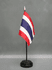 Each Thailand small miniature desk flag measures 4″x6″ and is attached to a 10″ black plastic stick with a gold spear topper. These little Thailand flags make perfect table decorations. Black flag stand is not included, but is sold separately.