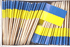 Flag toothpicks are packaged 100 to the box. Each box is sealed with a cellophane wrapper. Flag designs measure 1"x1.5" and are attached to a standard size wooden 2.5" toothpick.