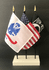 Flags measure 4"x6", image is on both sides and each flag is attached to a 10" plastic staff with a gold spear topper. The base measures 4" long x 2.5" wide x .75" tall.