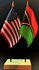 This high quality Vanuatu and American miniature international flag desk set is perfect for office, classroom and table decorations. Flags are made of silk-like rayon, measure 4″x6″ and are attached to 10″ black plastic staff with a gold spear top. All edges are hem stitched.
